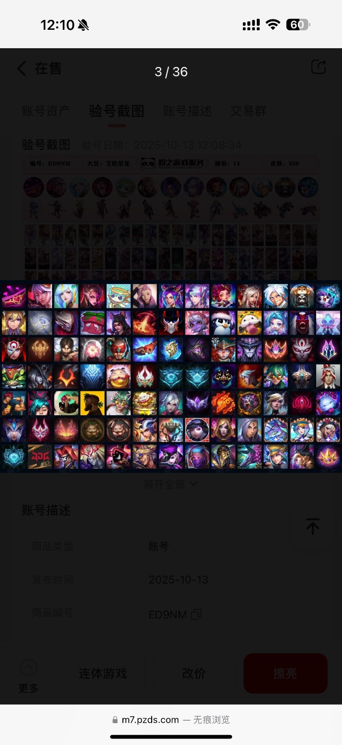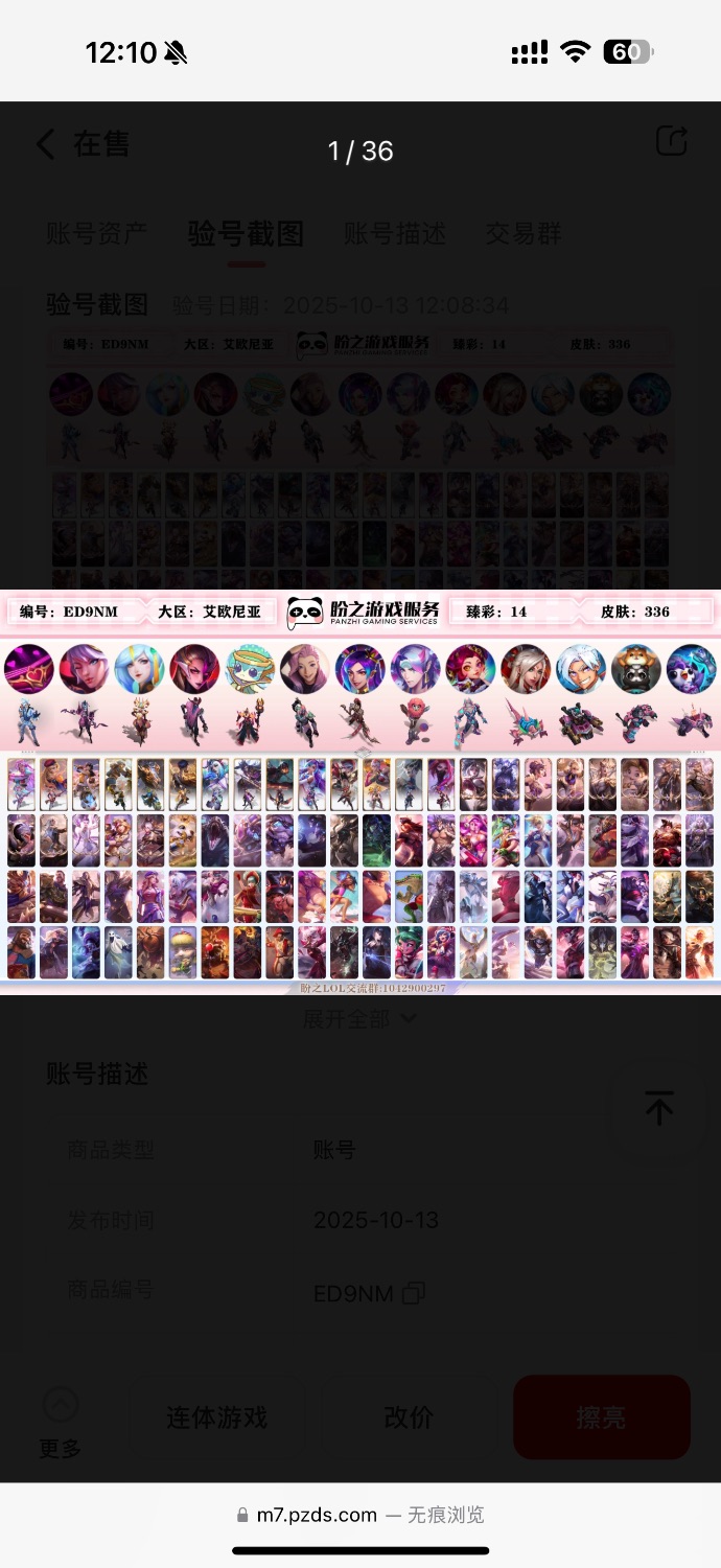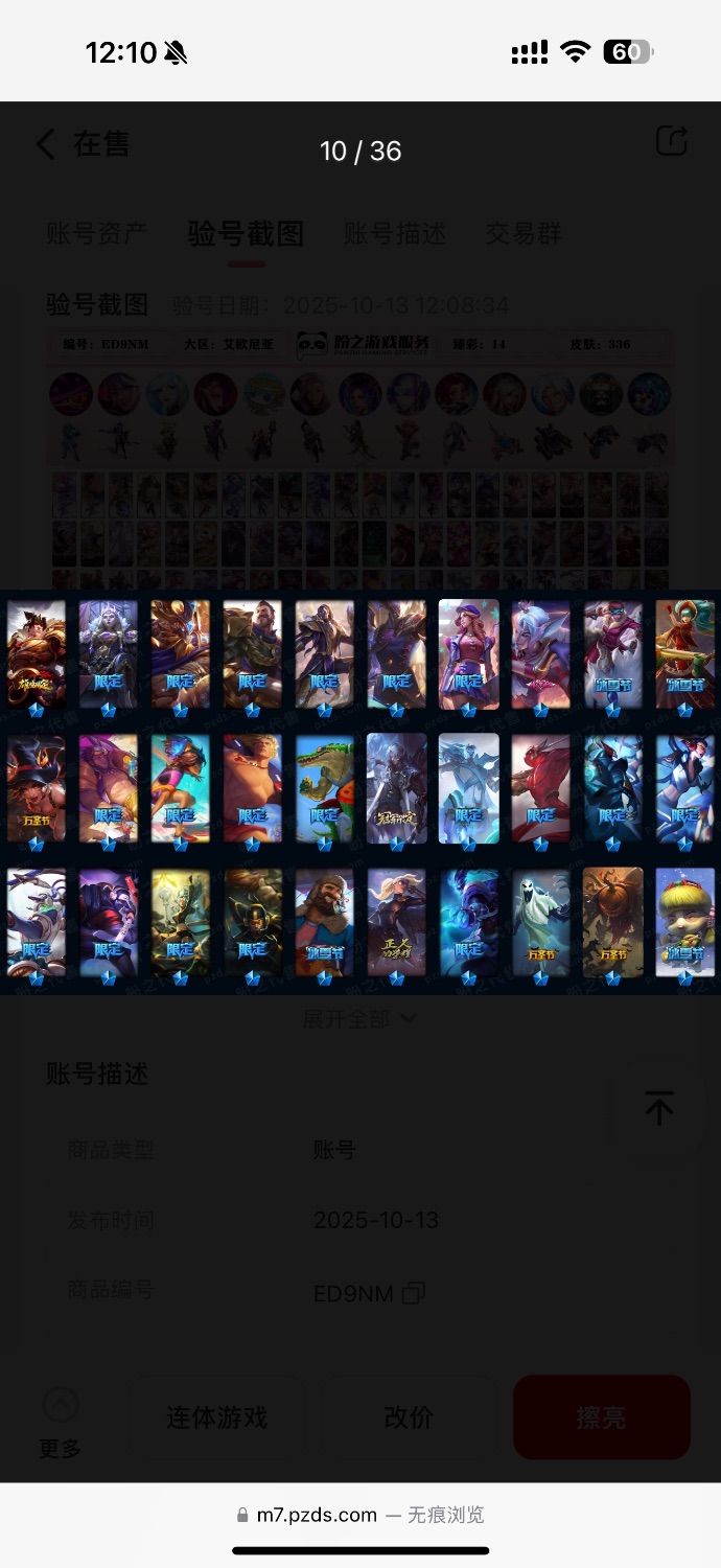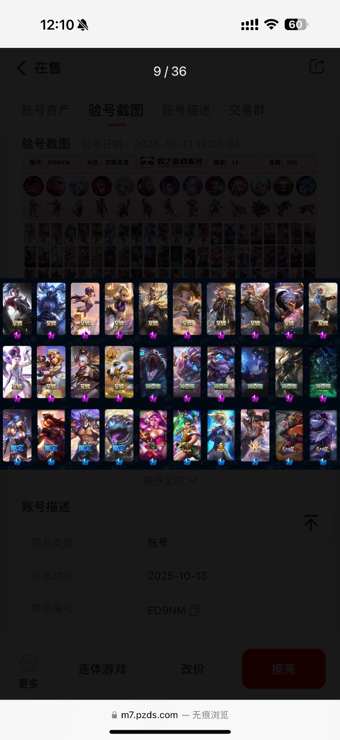 L111671号 336皮肤 231炫彩 14臻彩 22神话/49限定/34传说/170英雄 账号等级:570